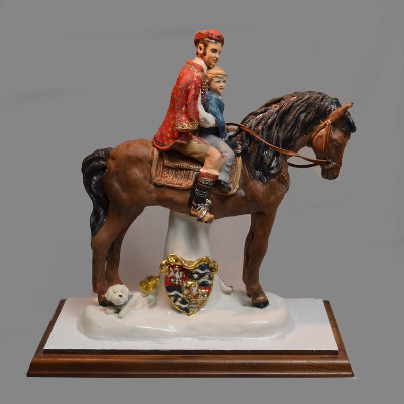 The figurine (above) was made first. Then, the booklet was created to detail the adventures that the children had with the Unicorn. They rode the Unicorn from their backyard to New York City's Central Park- then across the Atlantic ocean to visit King Arthur at his castle in Avalon. The figurine (12" L x 8" W) and the book go together.